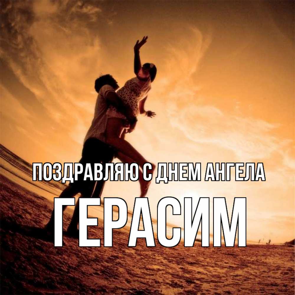 Открытка Поздравляю с днем Ангела Герасим. фото с искажениями. парень держит девушку