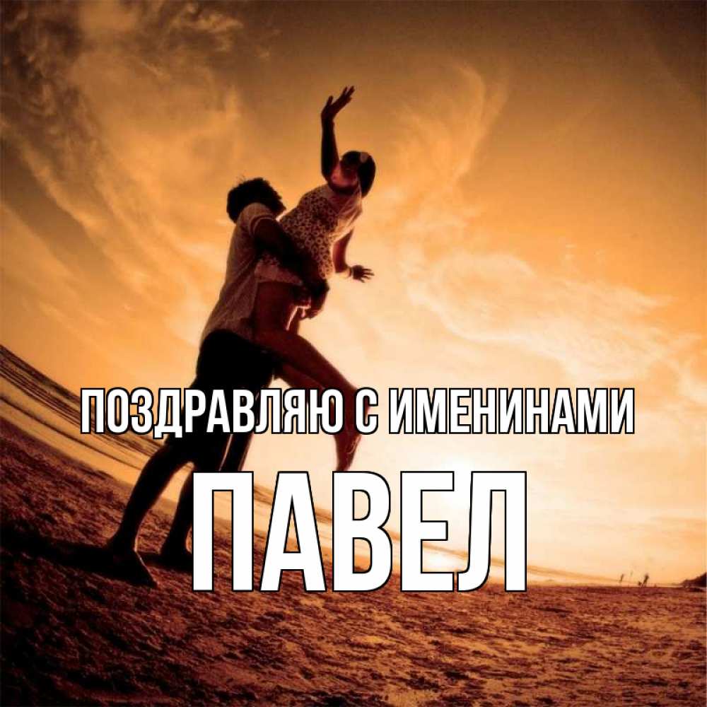 Открытка Поздравляю с именинами Павел. фото с искажениями. парень держит девушку