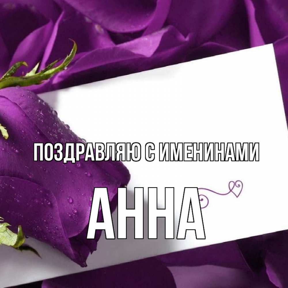 Открытка Поздравляю с именинами Анна. подпись. роза
