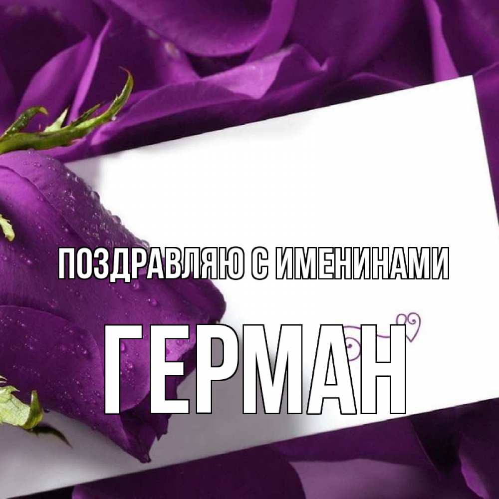 Открытка Поздравляю с именинами Герман. подпись. роза