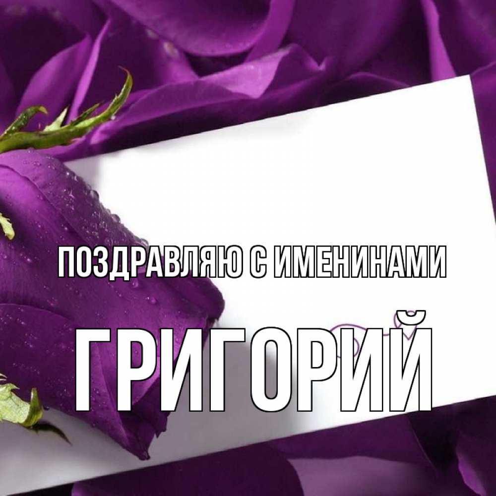 Открытка Поздравляю с именинами Григорий. подпись. роза