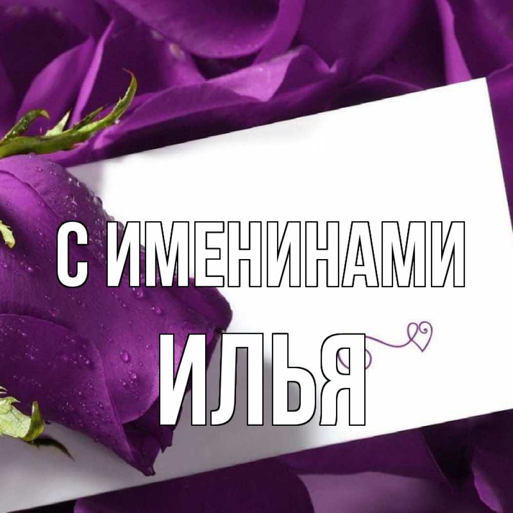 Открытка С именинами Илья. подпись. роза