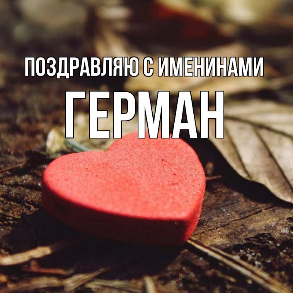 Открытка Поздравляю с именинами Герман. сердце 4. листья деревье 4
