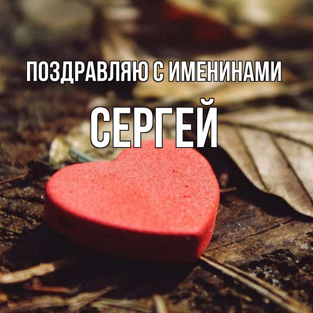 Открытка Поздравляю с именинами Сергей. сердце 4. листья деревье 4