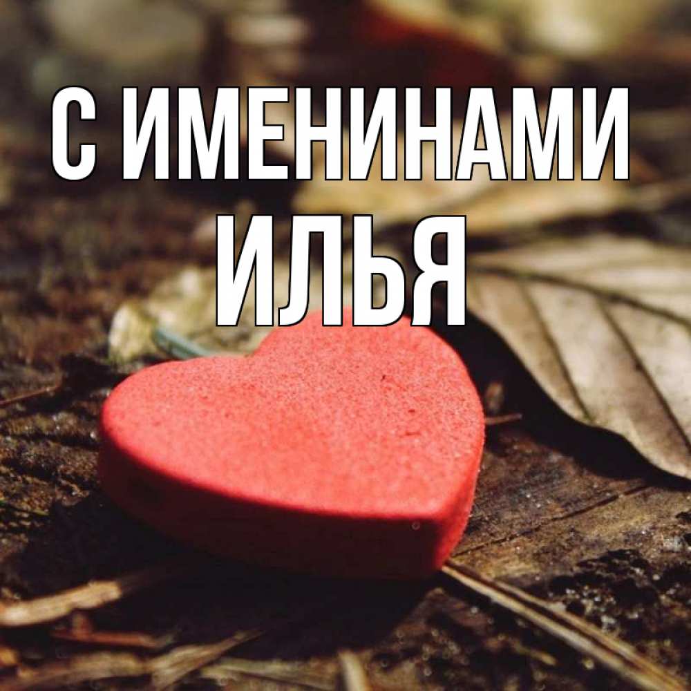 Открытка С именинами Илья. сердце 4. листья деревье 4
