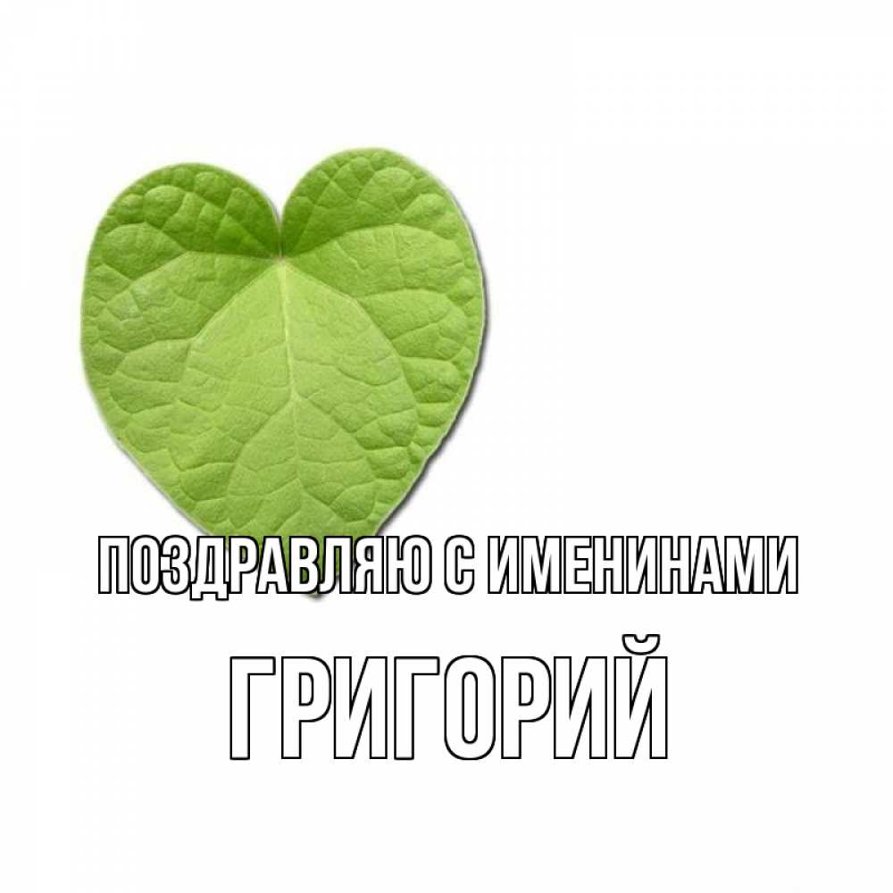 Открытка Поздравляю с именинами Григорий. зеленый лист. тебе