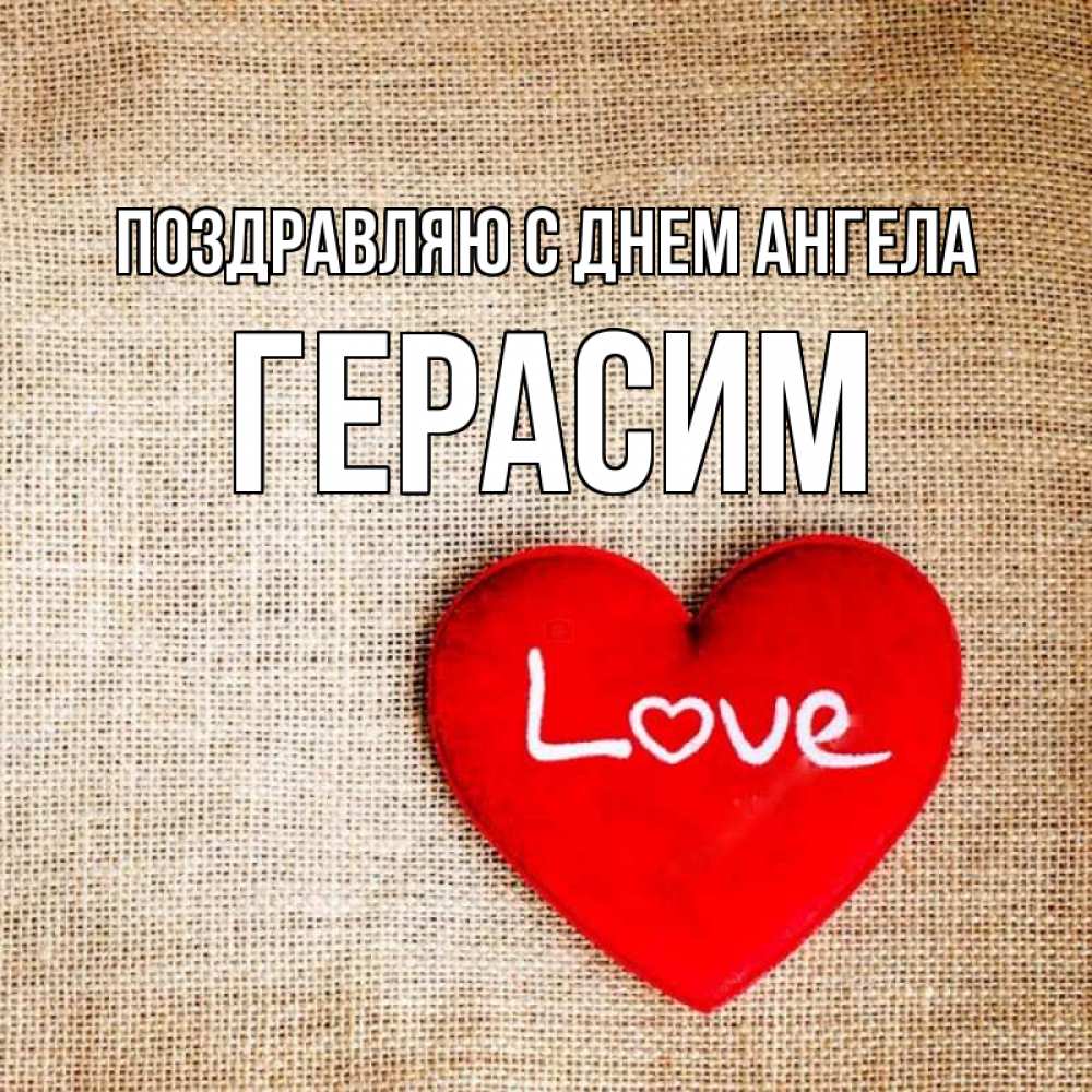 Открытка Поздравляю с днем Ангела Герасим. мешковина и сердце. лове
