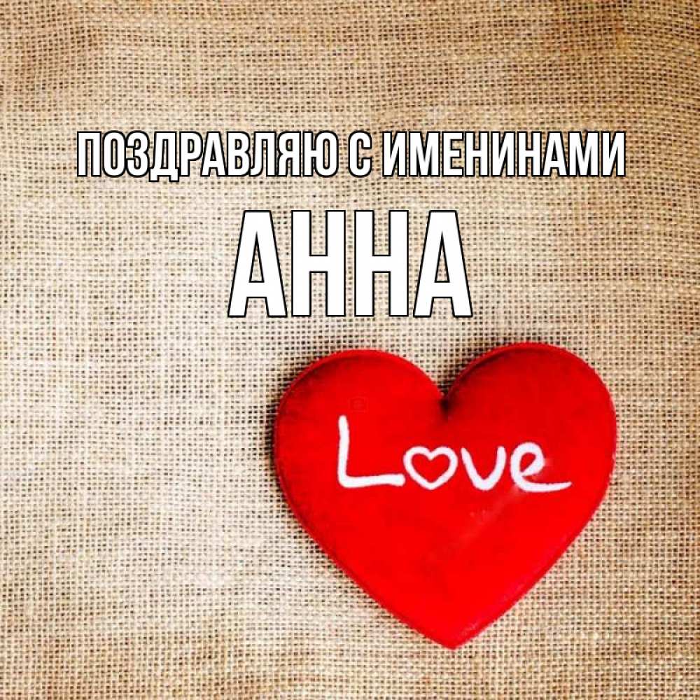 Открытка Поздравляю с именинами Анна. мешковина и сердце. лове
