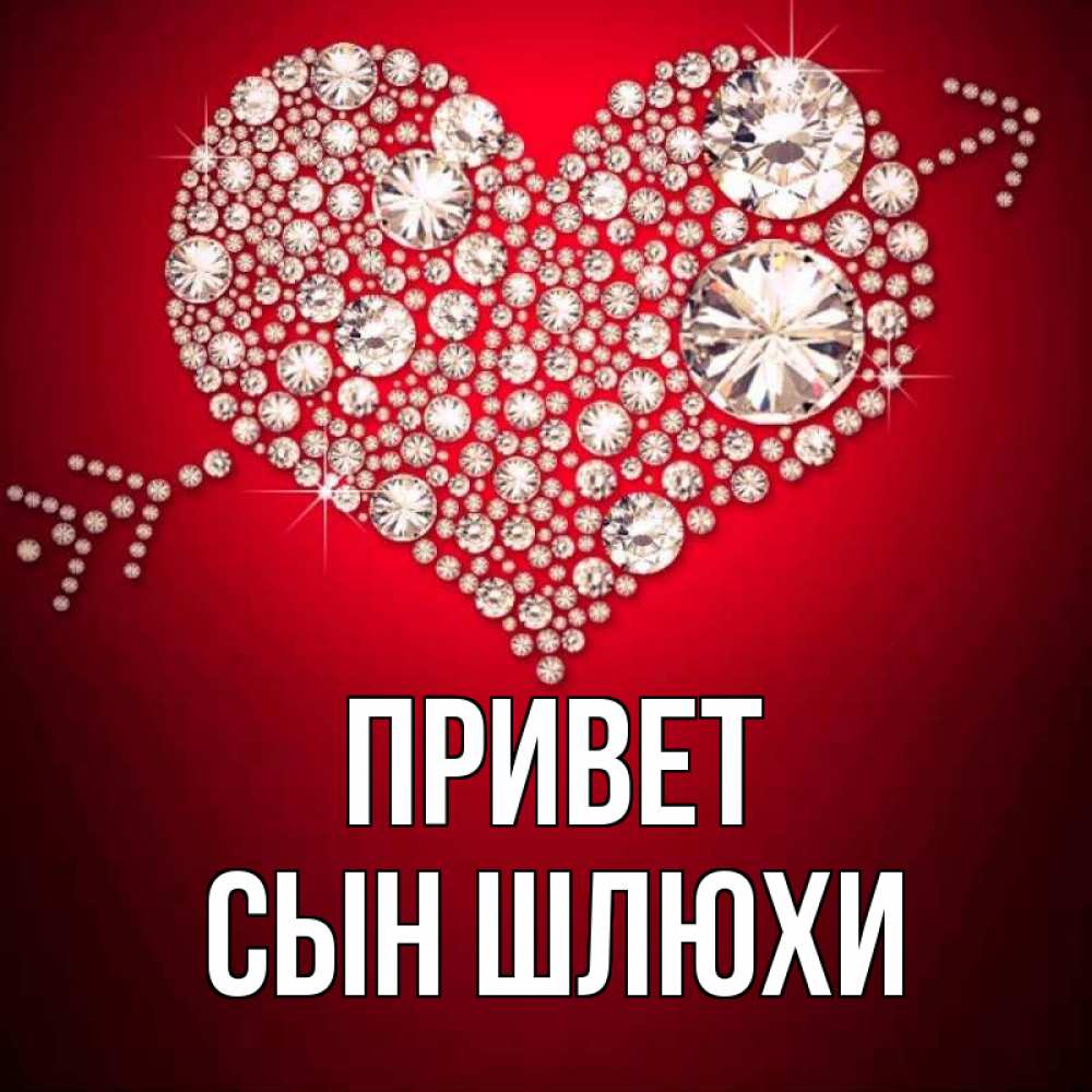 Открытка Привет Сын шлюхи. сердце с бриллиантом. стрела купидона