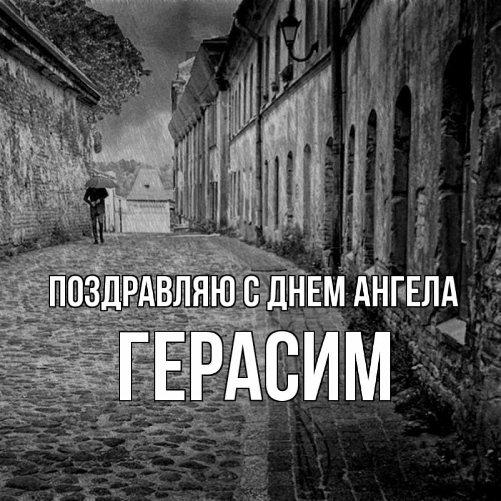 Открытка Поздравляю с днем Ангела Герасим. старый город. зонт