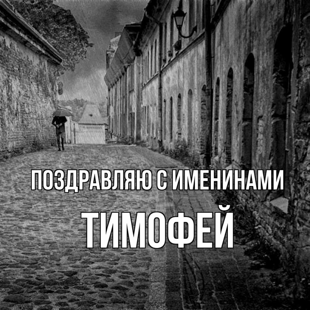 Открытка Поздравляю с именинами Тимофей. старый город. зонт
