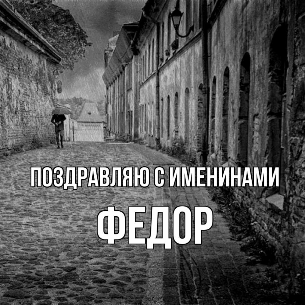 Открытка Поздравляю с именинами Федор. старый город. зонт