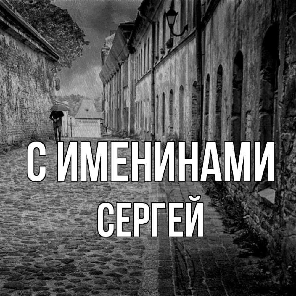 Открытка С именинами Сергей. старый город. зонт