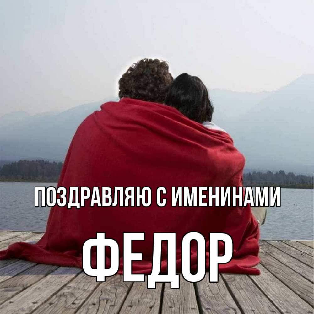 Открытка Поздравляю с именинами Федор. красный. плед