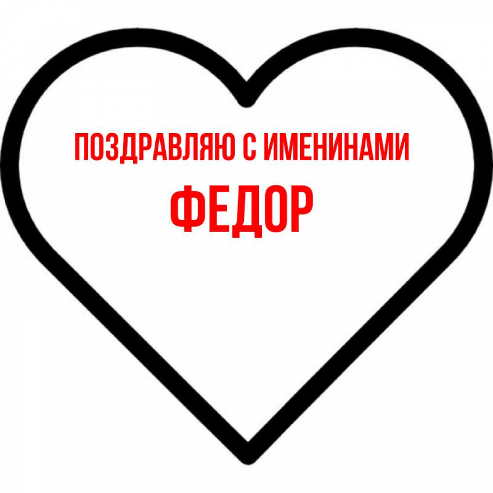 Открытка Поздравляю с именинами Федор. красный текст черное сердце. посто