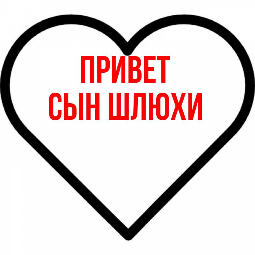 Открытка Привет Сын шлюхи. красный текст черное сердце. посто