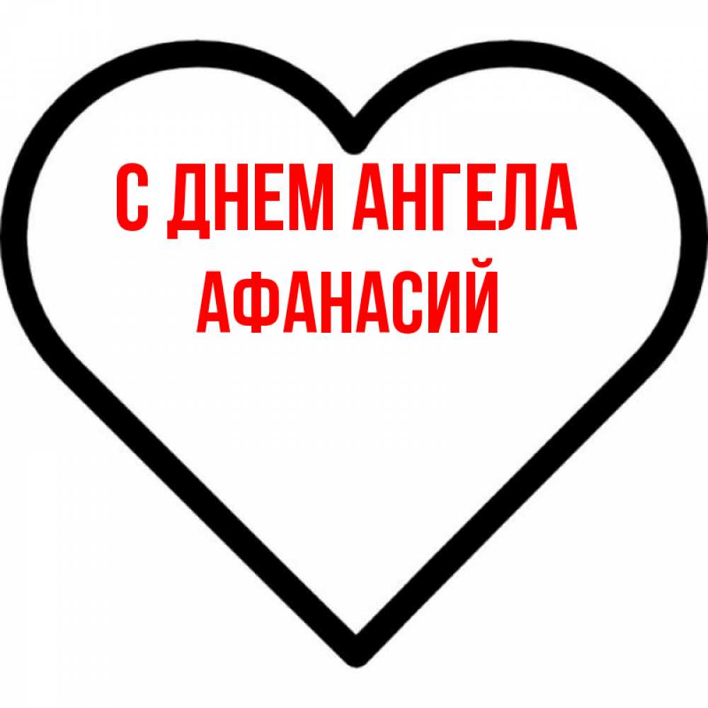 Открытка С днем Ангела Афанасий. красный текст черное сердце. посто