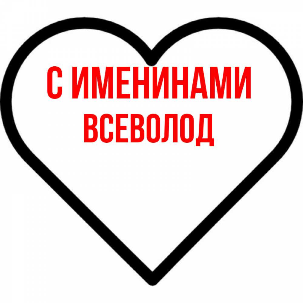 Открытка С именинами Всеволод. красный текст черное сердце. посто