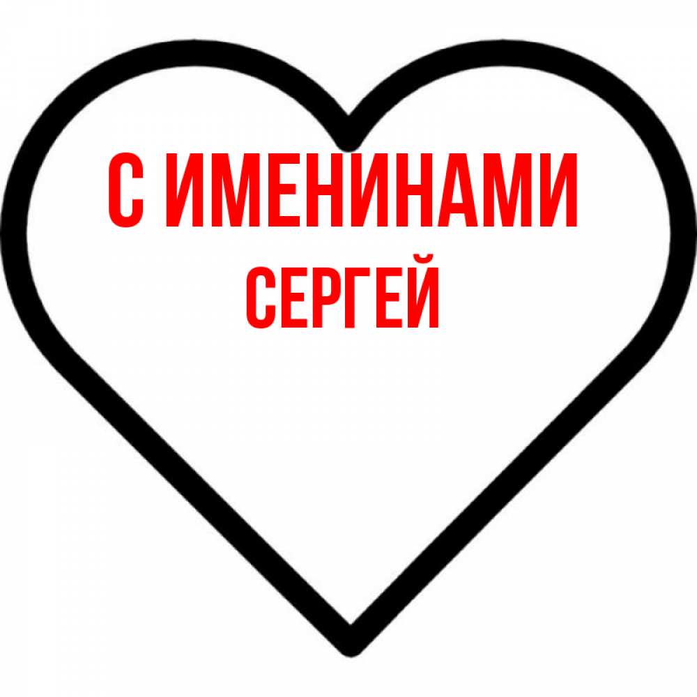 Открытка С именинами Сергей. красный текст черное сердце. посто