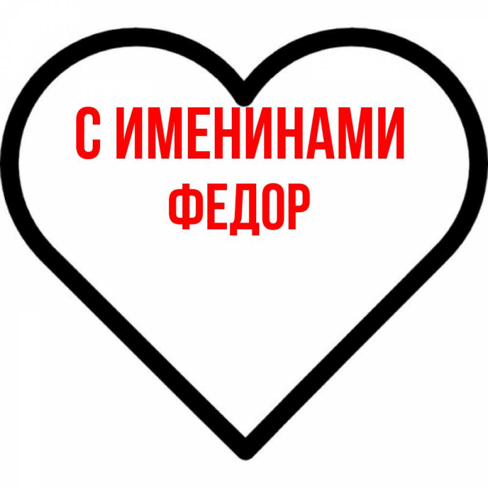 Открытка С именинами Федор. красный текст черное сердце. посто