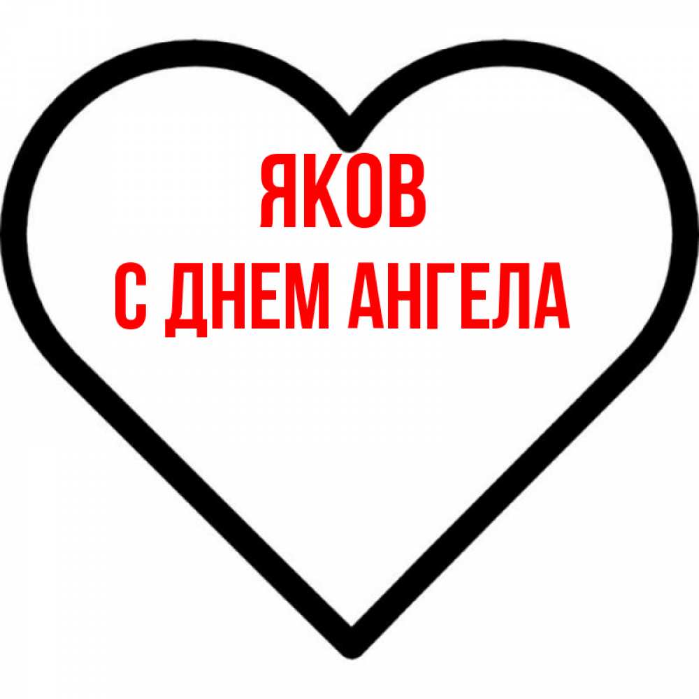 Открытка Яков С днем ангела. красный текст черное сердце. посто