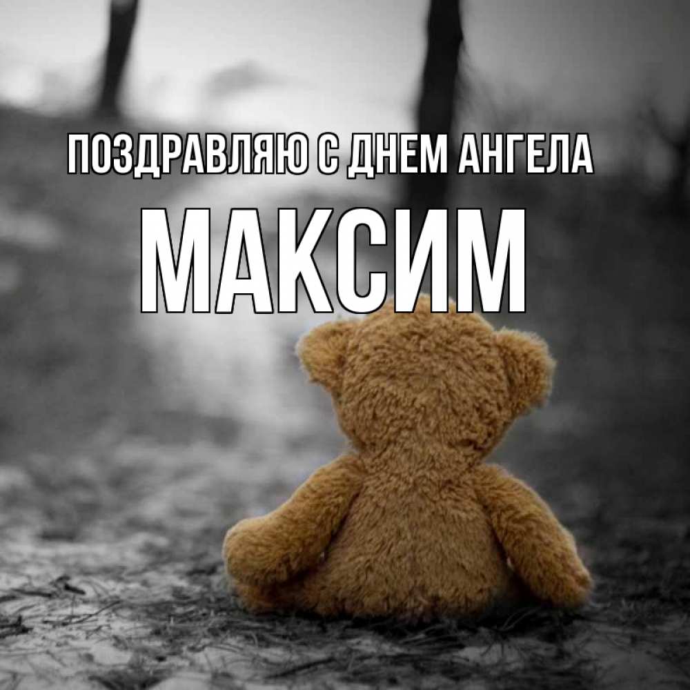 Открытка Поздравляю с днем Ангела Максим. Мишка скучает по тебе. красивые открытки