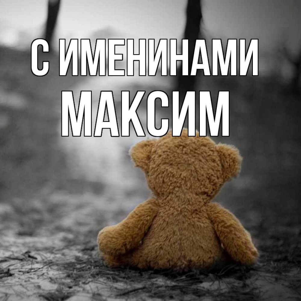 Открытка С именинами Максим. Мишка скучает по тебе. красивые открытки