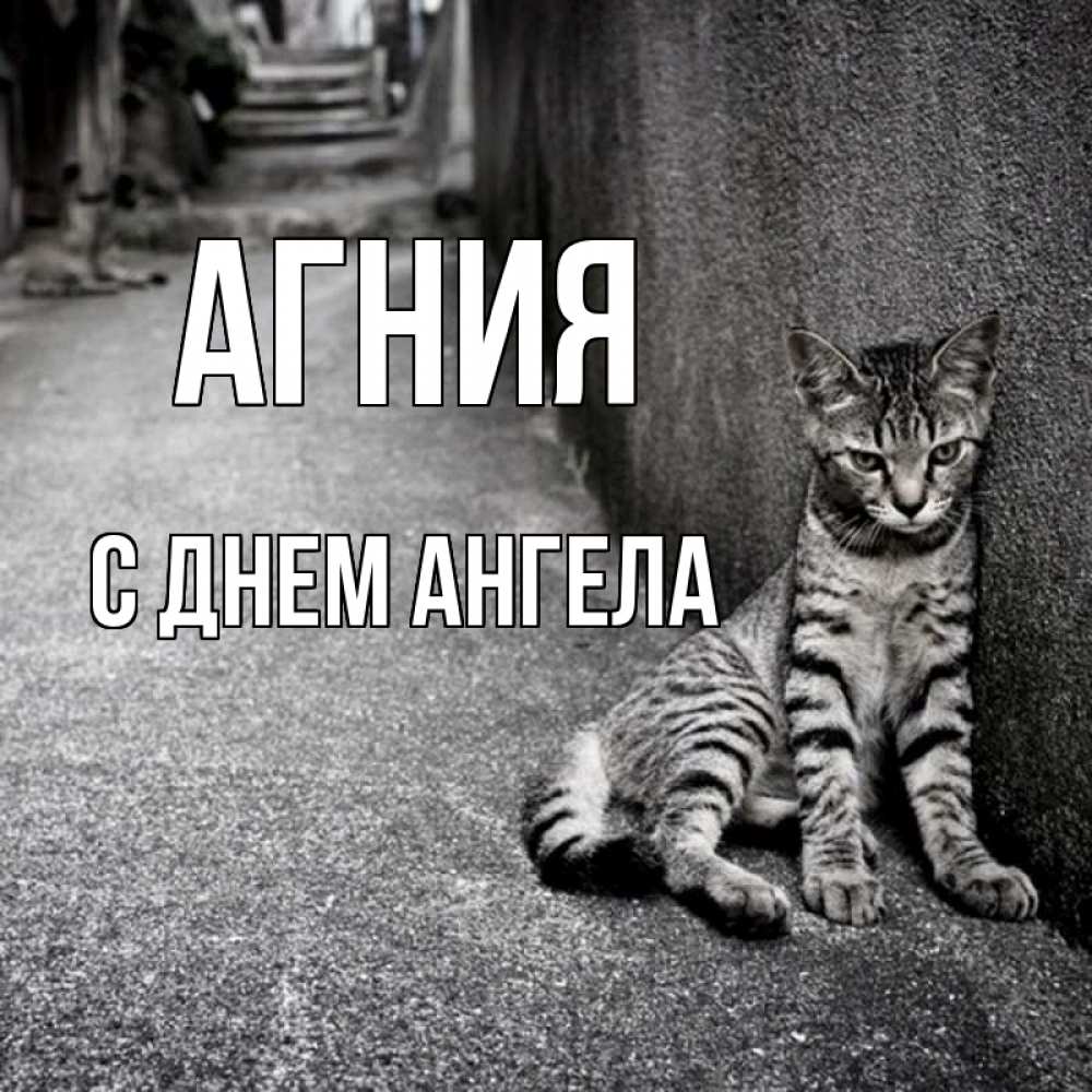 Открытка Агния С днем ангела. полосатый котик скучает один. одиноко котику