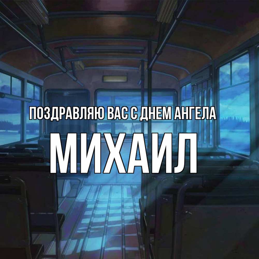 Открытка Поздравляю Вас с днем Ангела Михаил. автобус пустой. тоска