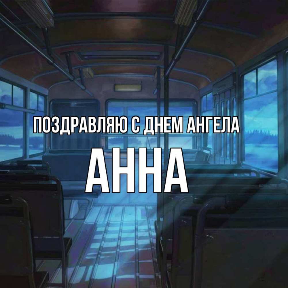 Открытка Поздравляю с днем Ангела Анна. автобус пустой. тоска