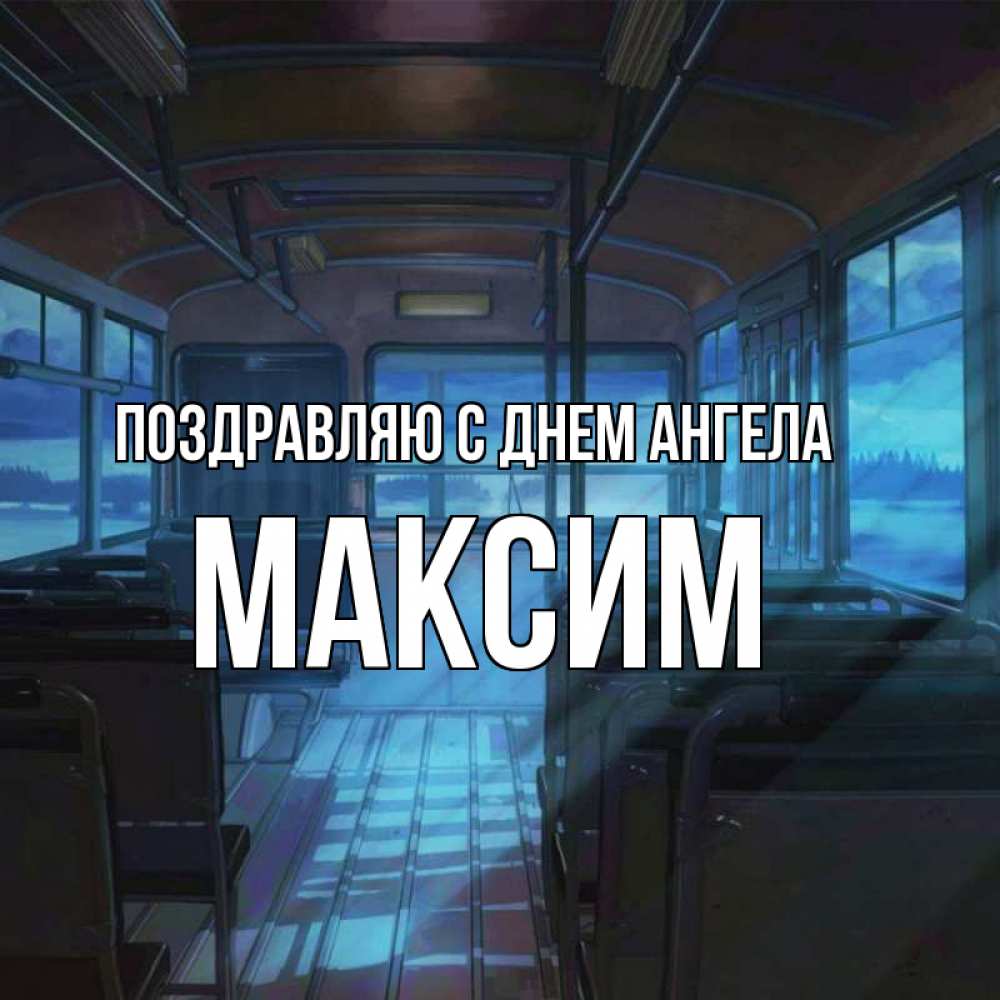Открытка Поздравляю с днем Ангела Максим. автобус пустой. тоска
