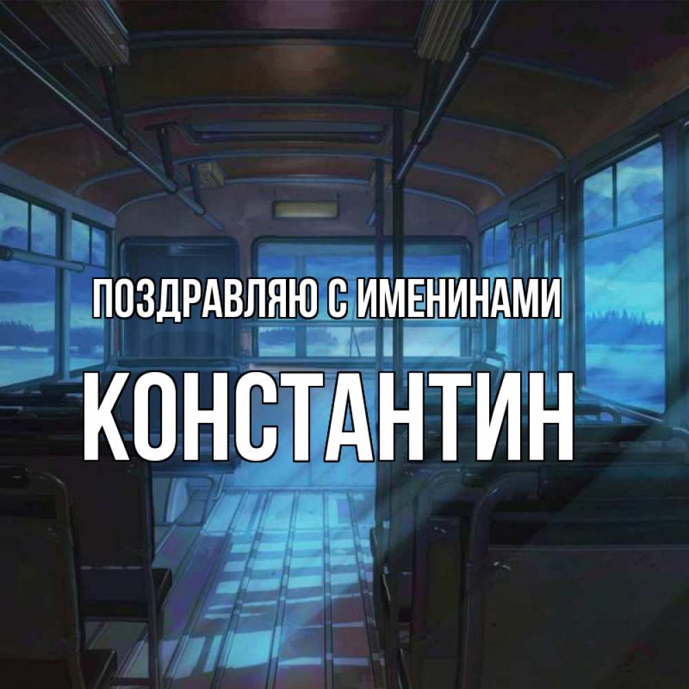 Открытка Поздравляю с именинами Константин. автобус пустой. тоска