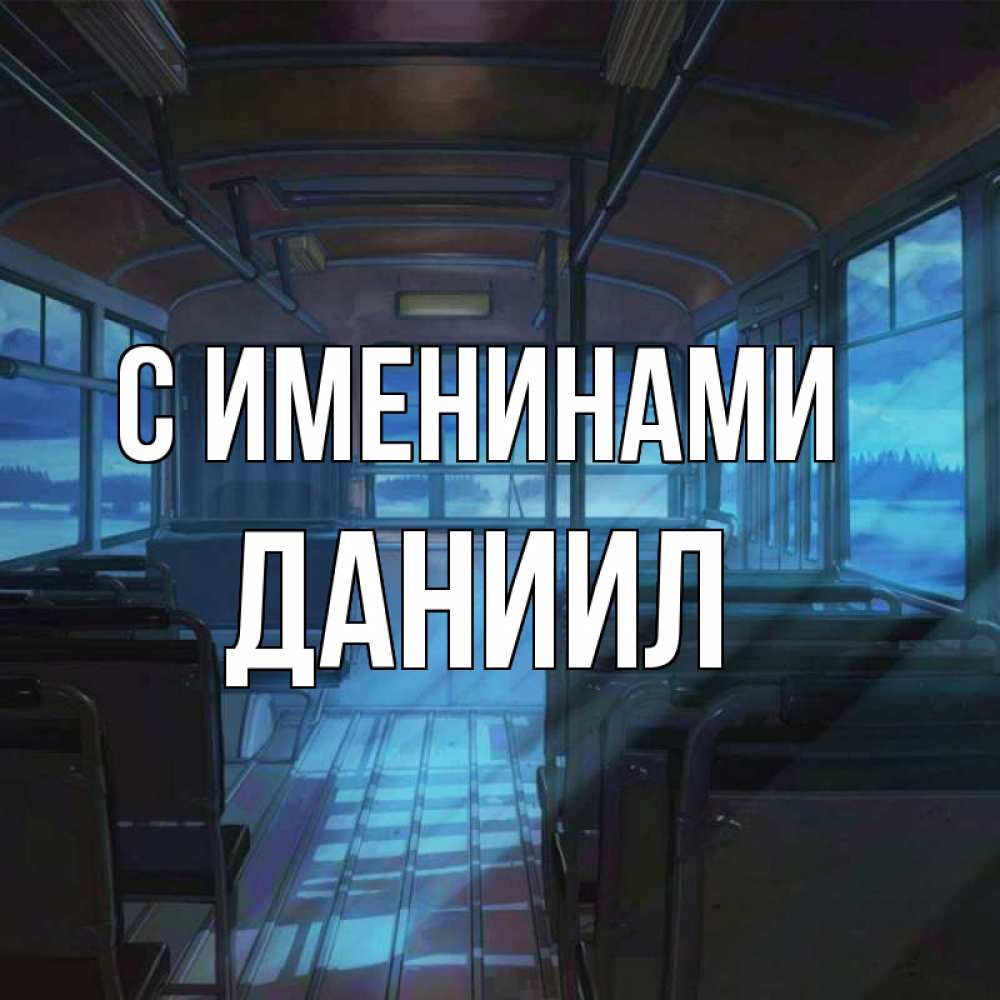 Открытка С именинами Даниил. автобус пустой. тоска