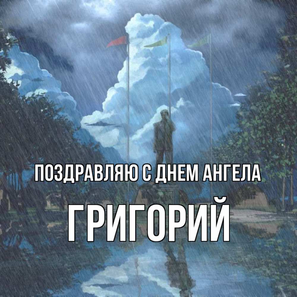 Открытка Поздравляю с днем Ангела Григорий. под дождем. печалька