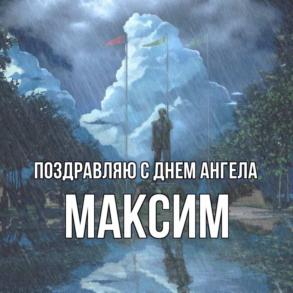 Открытка Поздравляю с днем Ангела Максим. под дождем. печалька