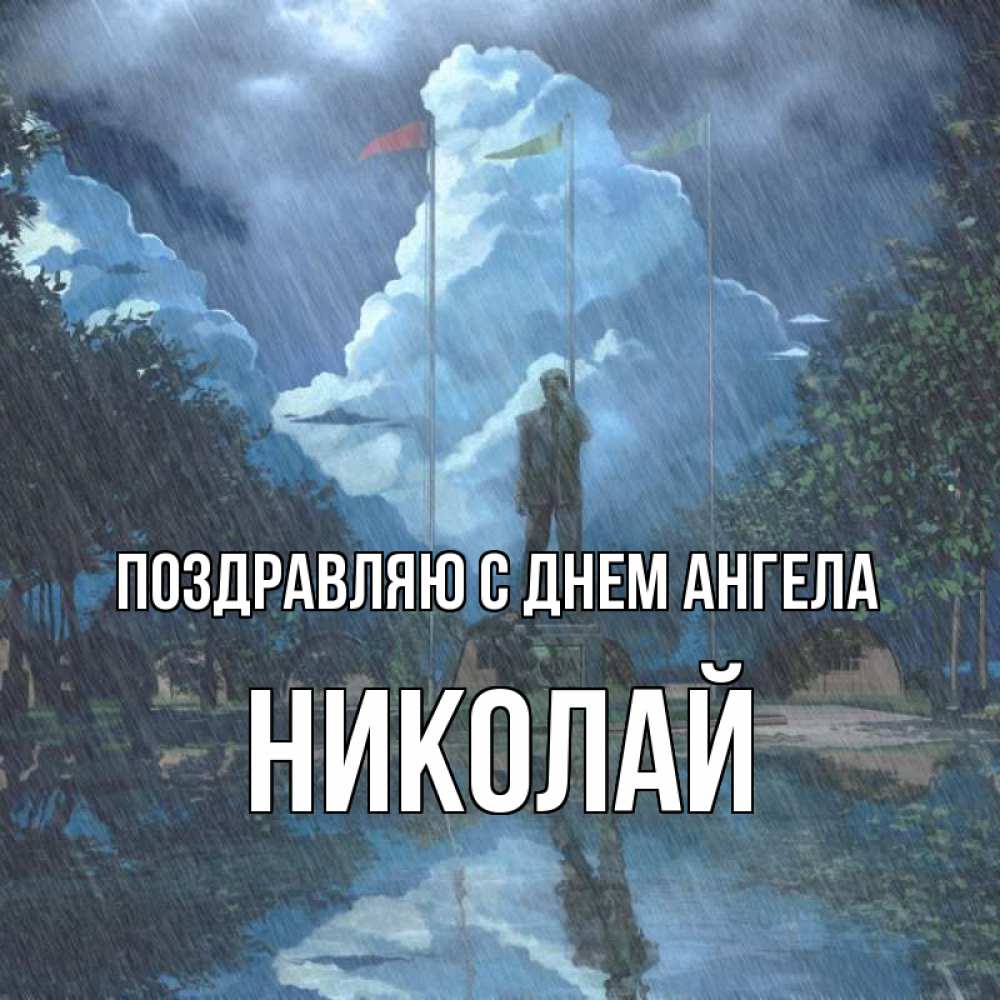 Открытка Поздравляю с днем Ангела Николай. под дождем. печалька