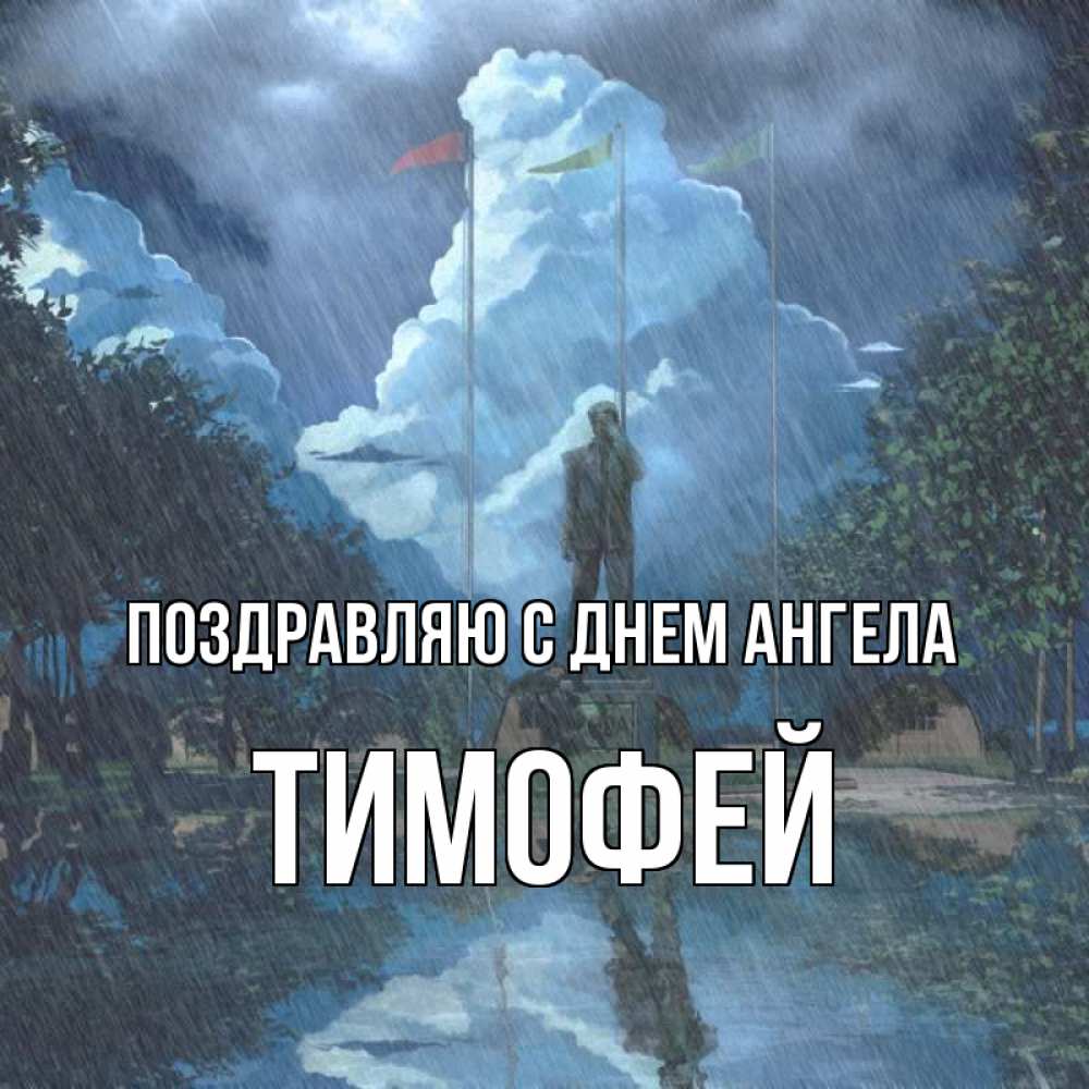 Открытка Поздравляю с днем Ангела Тимофей. под дождем. печалька