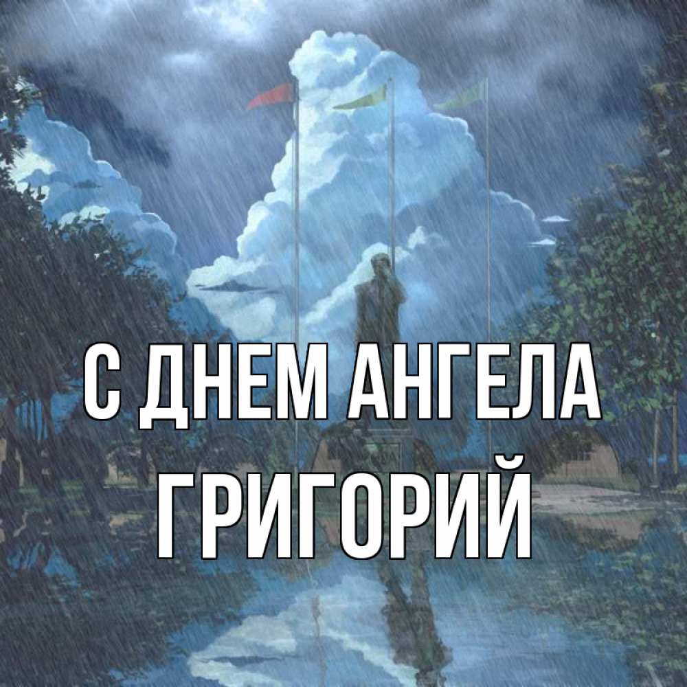 Открытка С днем Ангела Григорий. под дождем. печалька