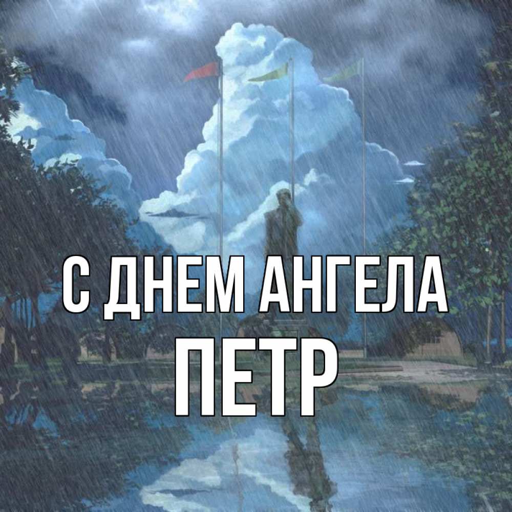 Открытка С днем Ангела Петр. под дождем. печалька