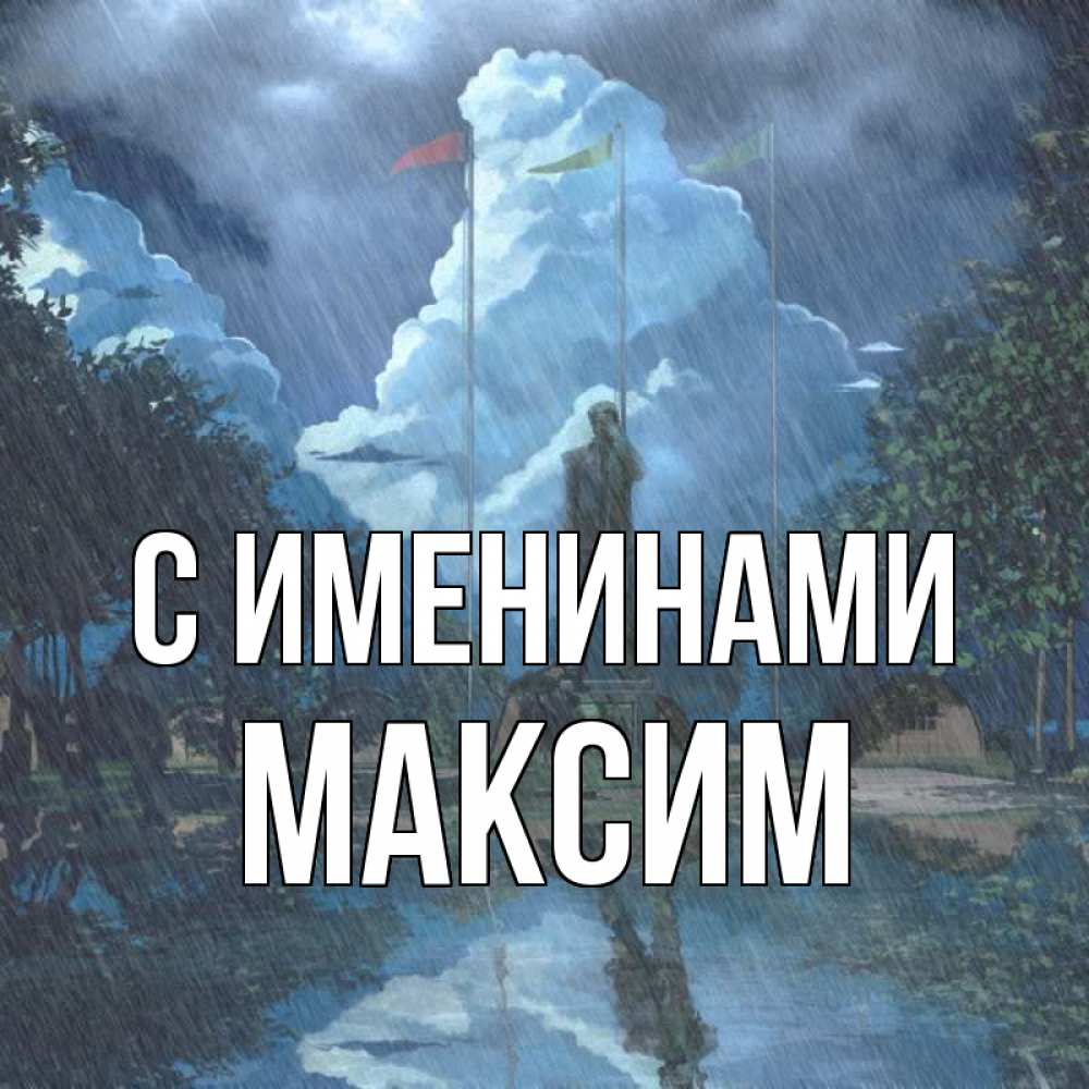 Открытка С именинами Максим. под дождем. печалька
