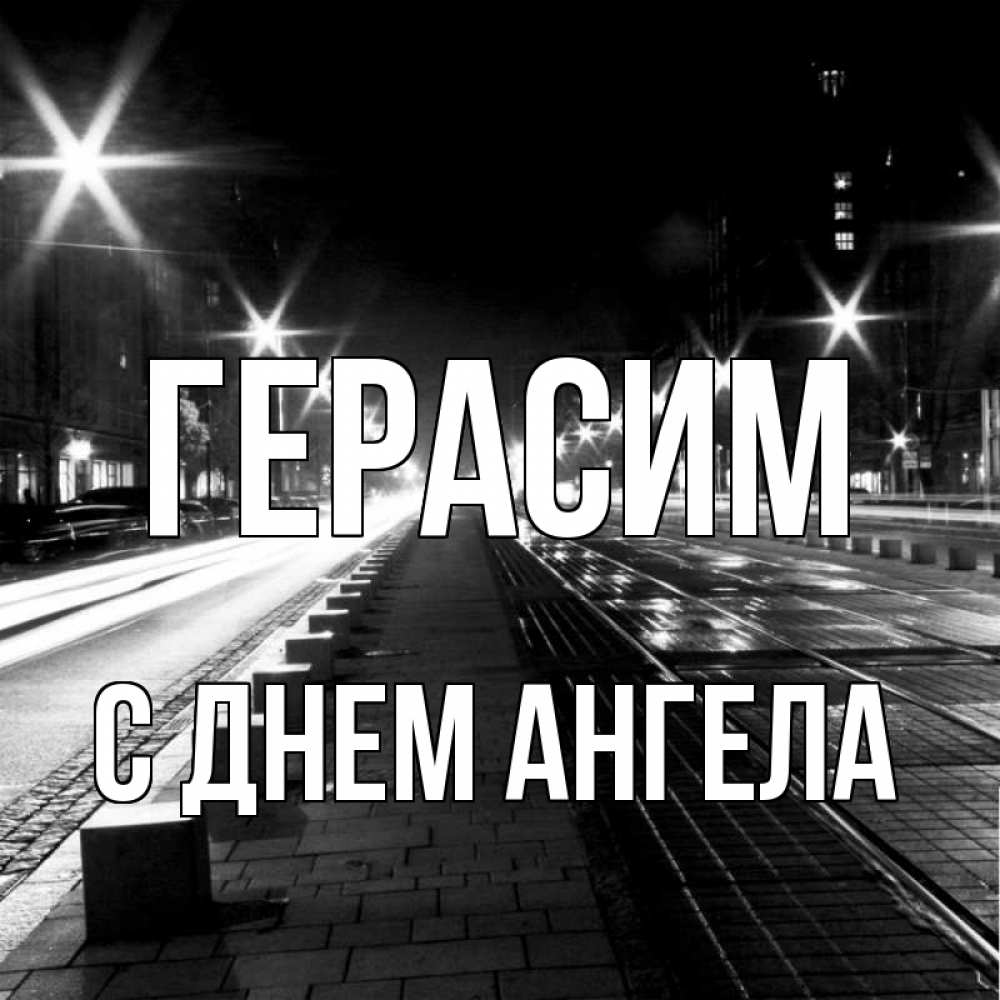Открытка Герасим С днем ангела. ночь улица фонарь. проспект