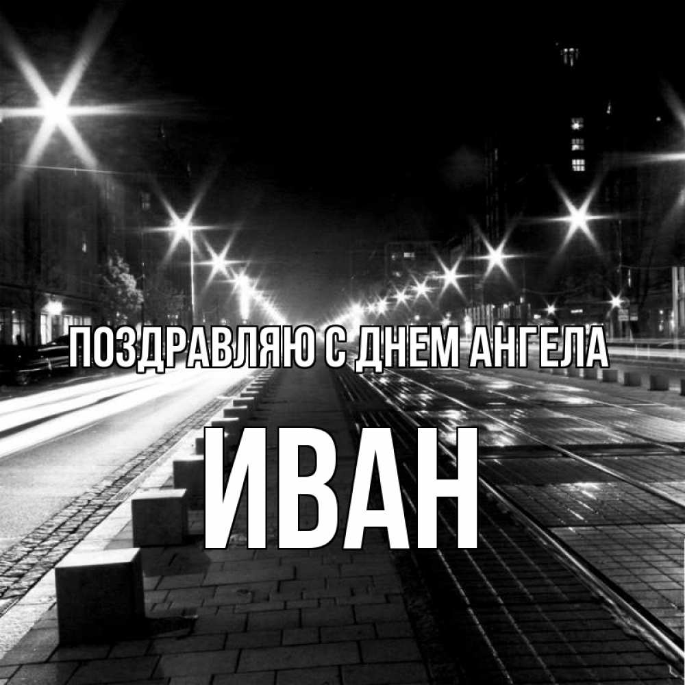 Открытка Поздравляю с днем Ангела Иван. ночь улица фонарь. проспект