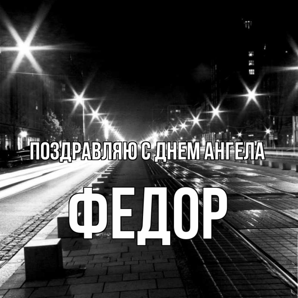 Открытка Поздравляю с днем Ангела Федор. ночь улица фонарь. проспект