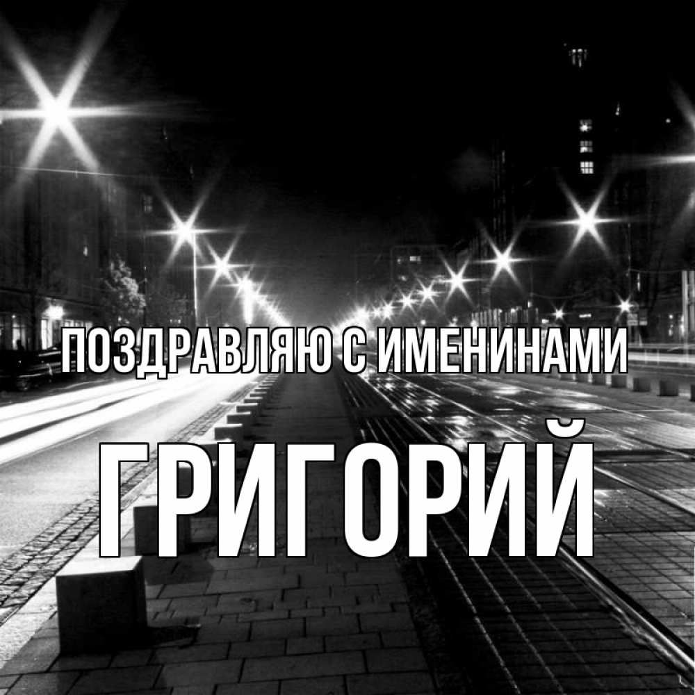 Открытка Поздравляю с именинами Григорий. ночь улица фонарь. проспект