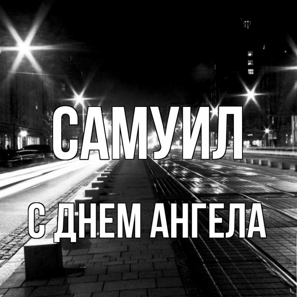 Открытка Самуил С днем ангела. ночь улица фонарь. проспект