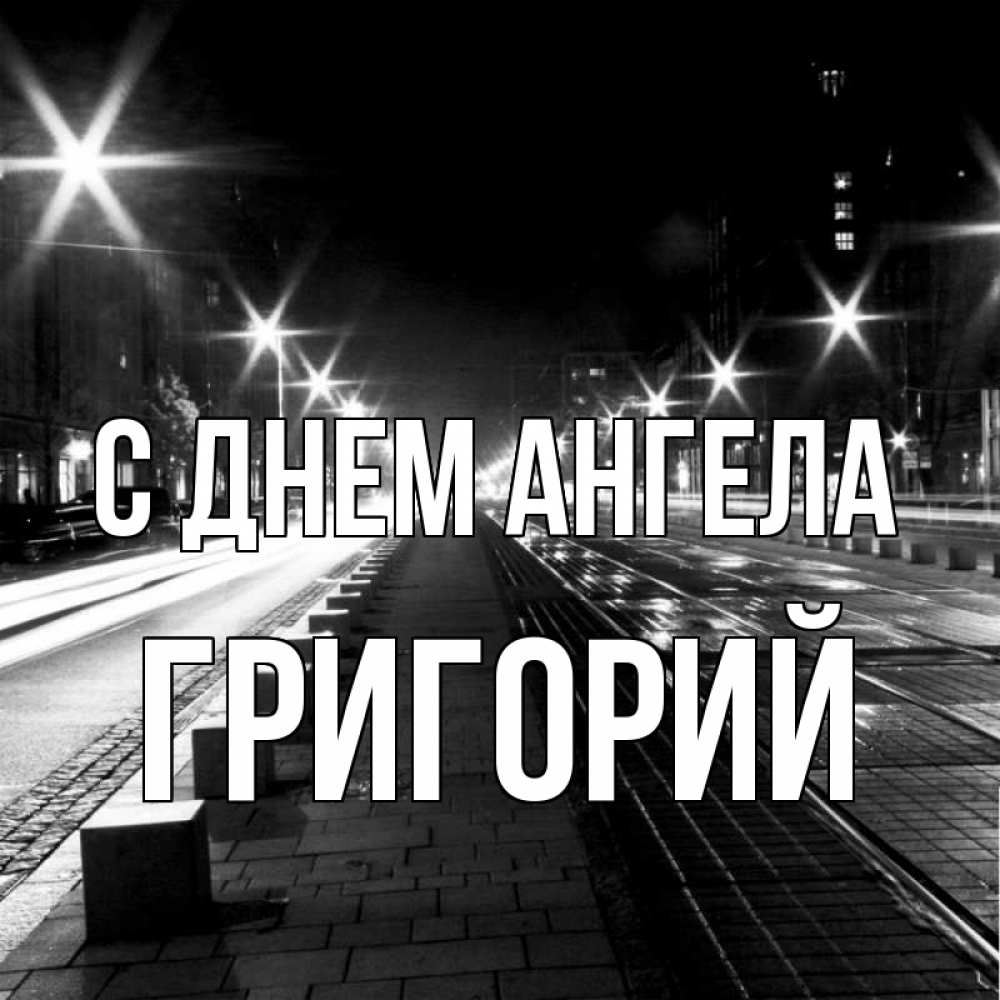 Открытка С днем Ангела Григорий. ночь улица фонарь. проспект