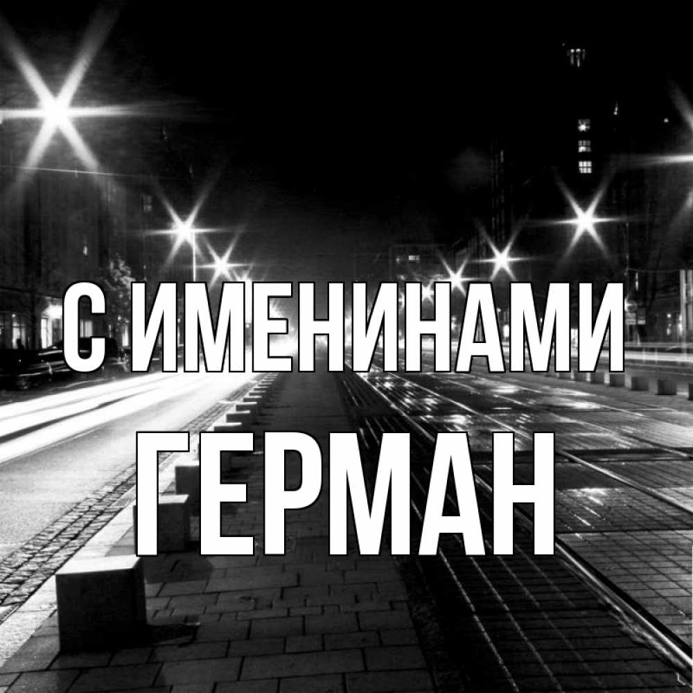 Открытка С именинами Герман. ночь улица фонарь. проспект