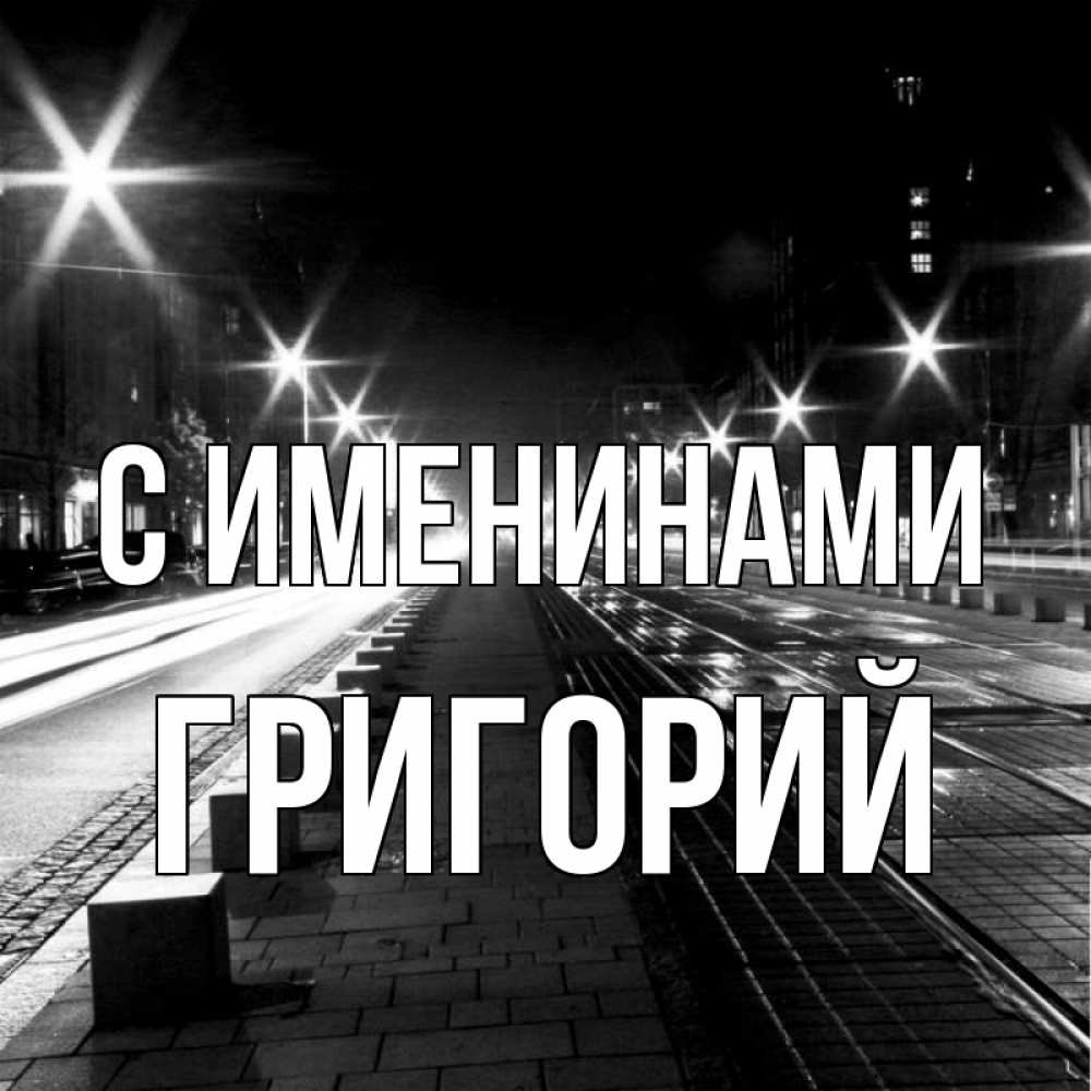 Открытка С именинами Григорий. ночь улица фонарь. проспект