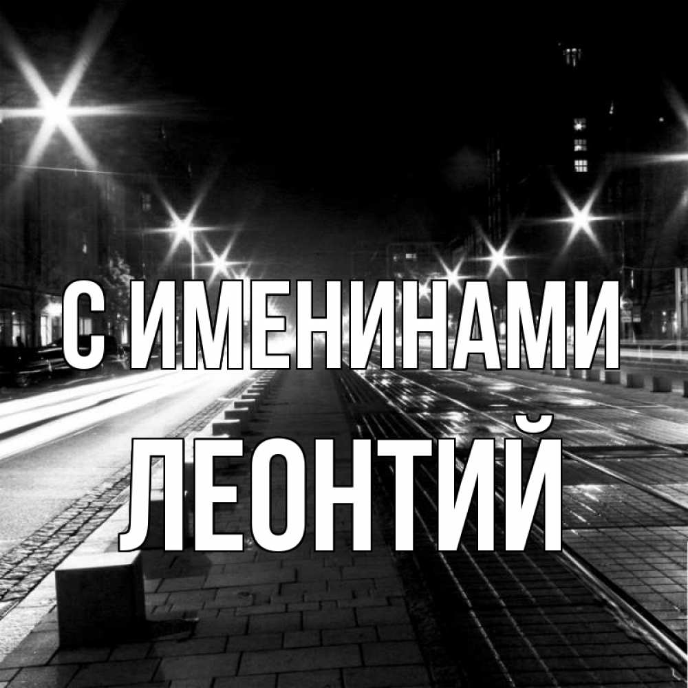 Открытка С именинами Леонтий. ночь улица фонарь. проспект