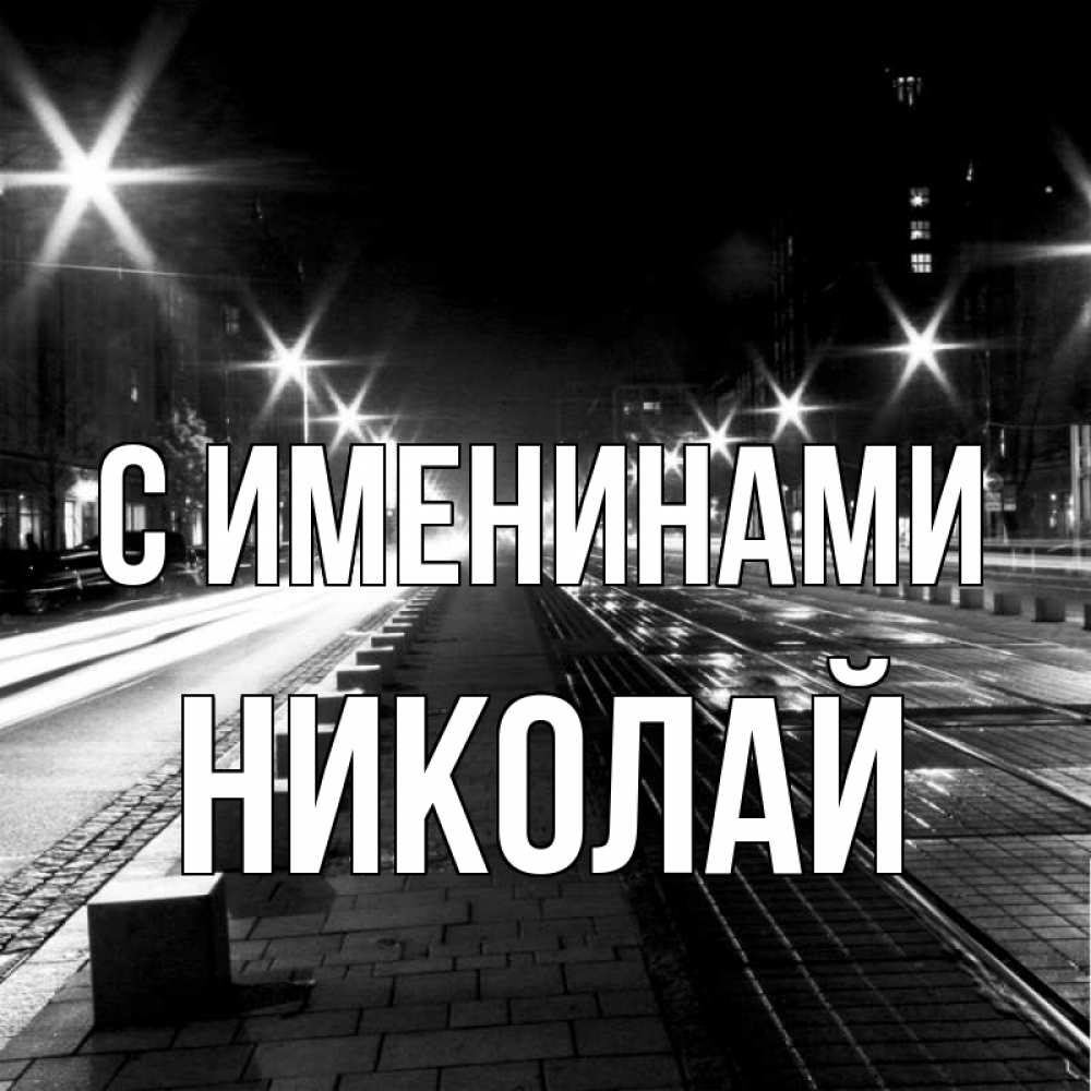 Открытка С именинами Николай. ночь улица фонарь. проспект